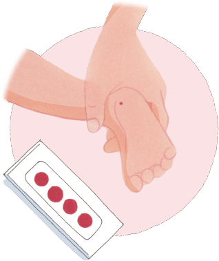 新生児マススクリーニングは、産まれてから数日の間に、かかとに小さな針を刺して少量の血液を採る検査です。