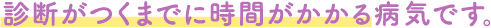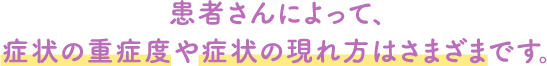 人によって、症状の現れる年齢や現れ方が異なります。原因のわからない症状で悩んでいる方や、思い当たる症状がある方は、早めに専門の医療機関にご相談ください。