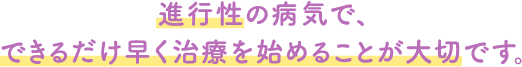 ムコ多糖症は進行していく病気です。そのため、なるべく早く診断を受けて、治療を開始することが大切です。